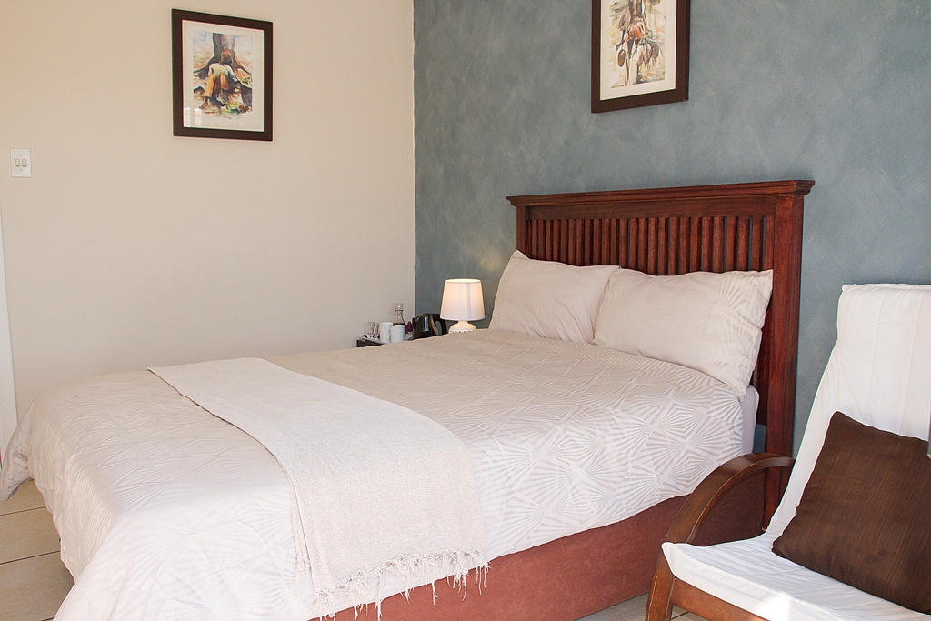Is the hassle and bustle of the city draining you? Why not come and break away for the weekend and recharge those batteries in our luxurious, comfortable and fully furnished Kudu Suite. Fitted with a plush queen size bed, couch and flat screen tv – your rest and rejuvenation are assured. Our room welcomes an abundance of natural light and is modernly designed with bold colors to enlighten the soul.